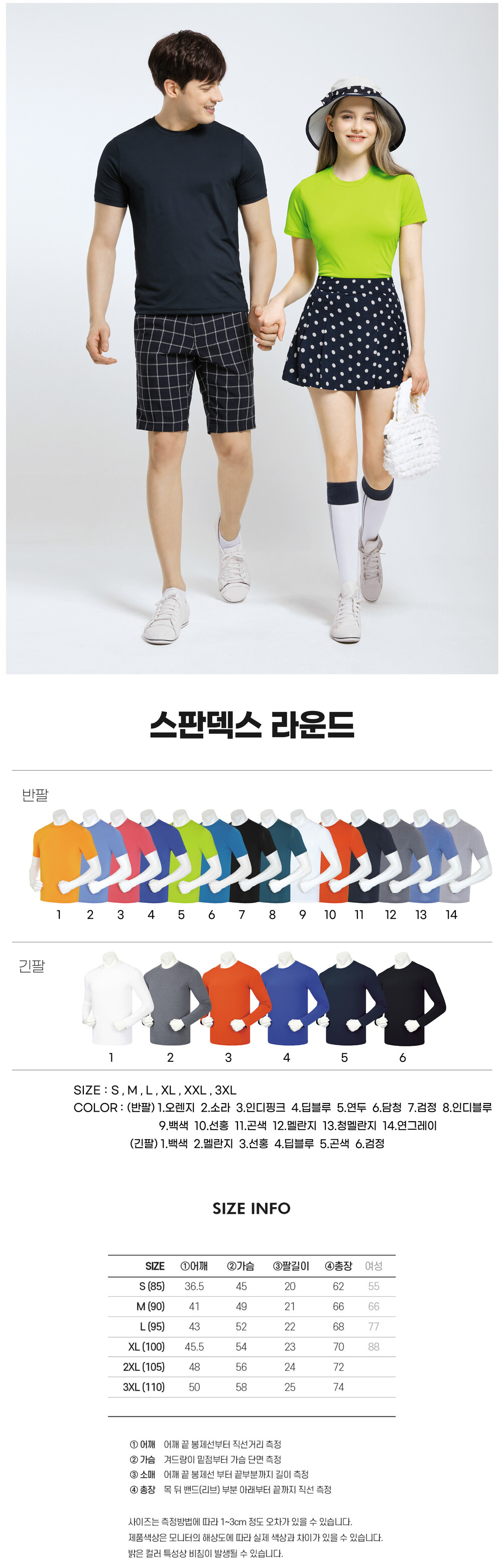 스판덱스 라운드티 반팔/긴팔 | 14 색상