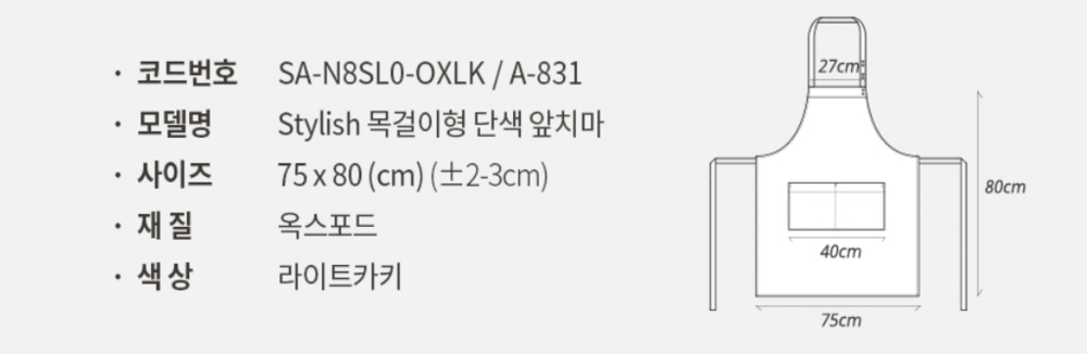 옥스포드 앞치마 (목걸이형) 라이트카키