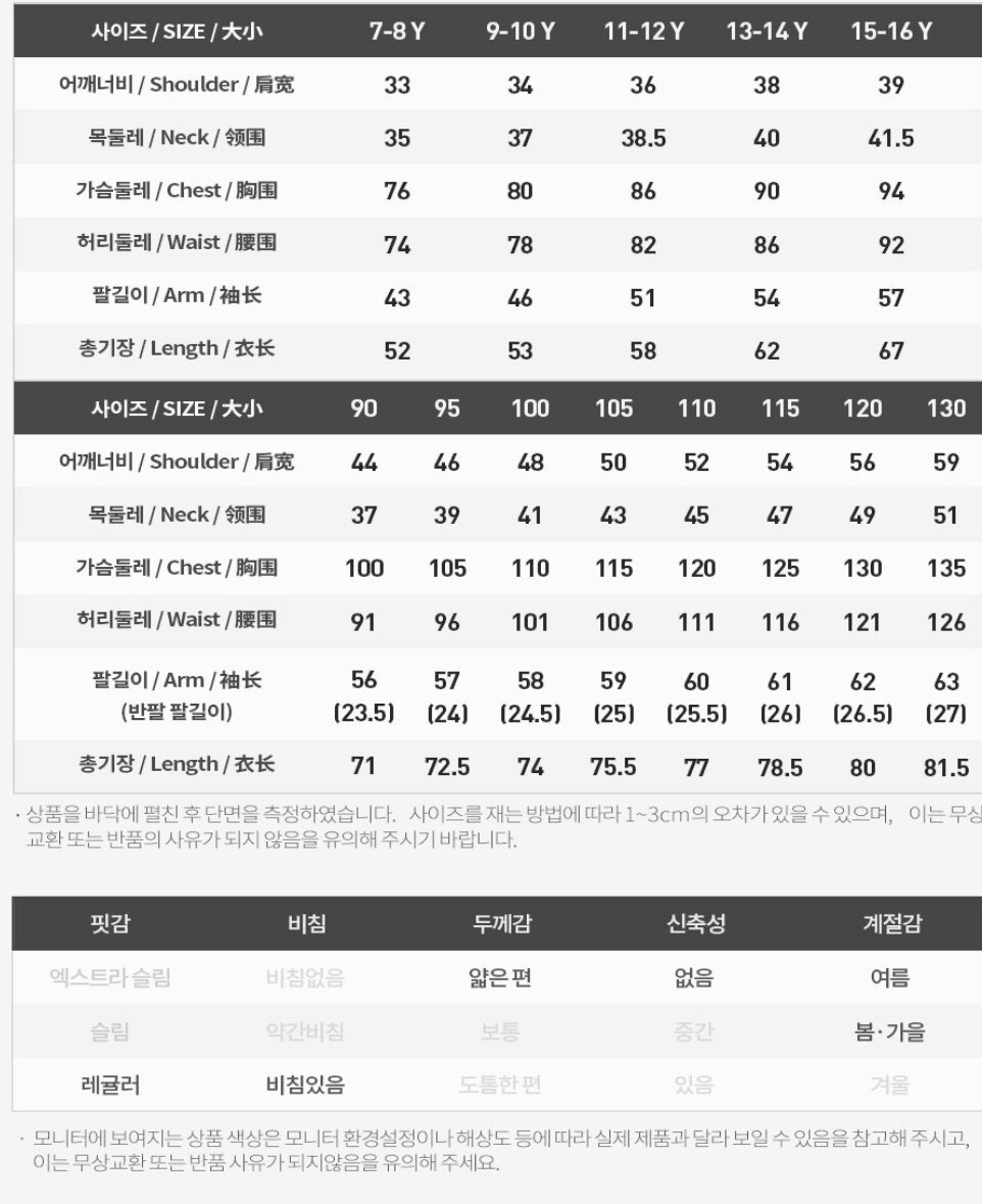 *현재 성인사이즈 115 사이즈는 진행하지 않습니다.