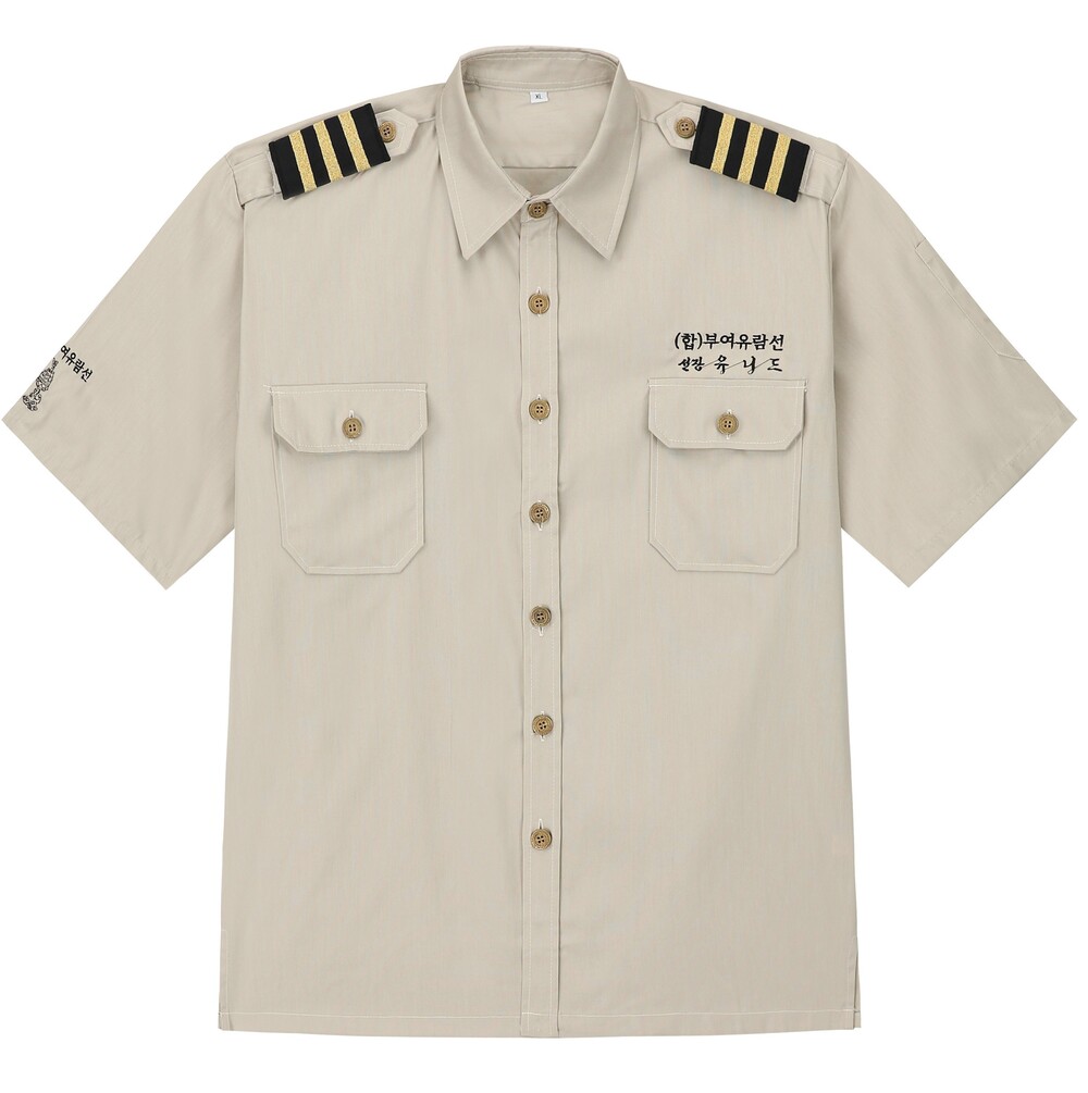 어깨 계급견장과 자수 마크는 고객사의 요청으로 부착한