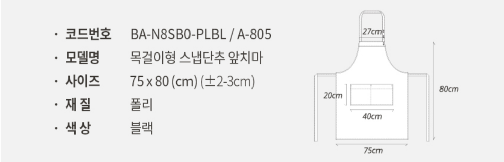 목걸이형 스냅단추 앞치마 | 4 색상