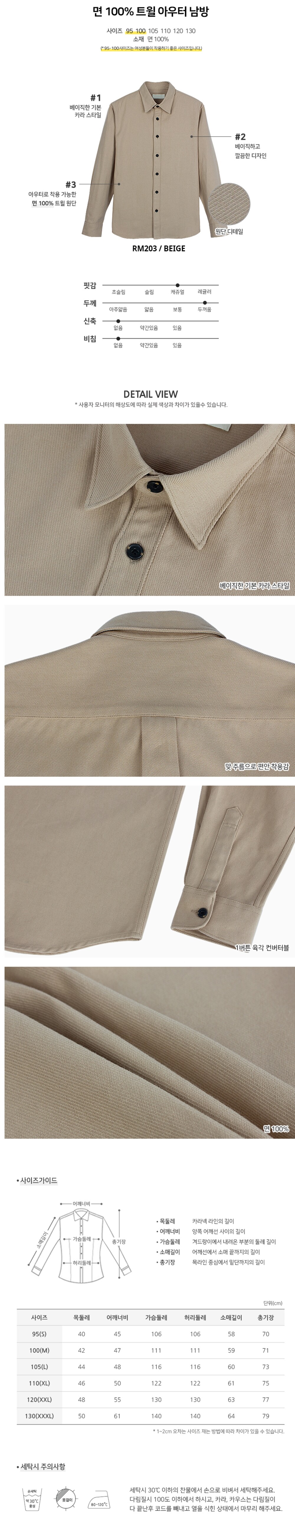 면100% 트윌아우터 겨울 남방 | *3 색상