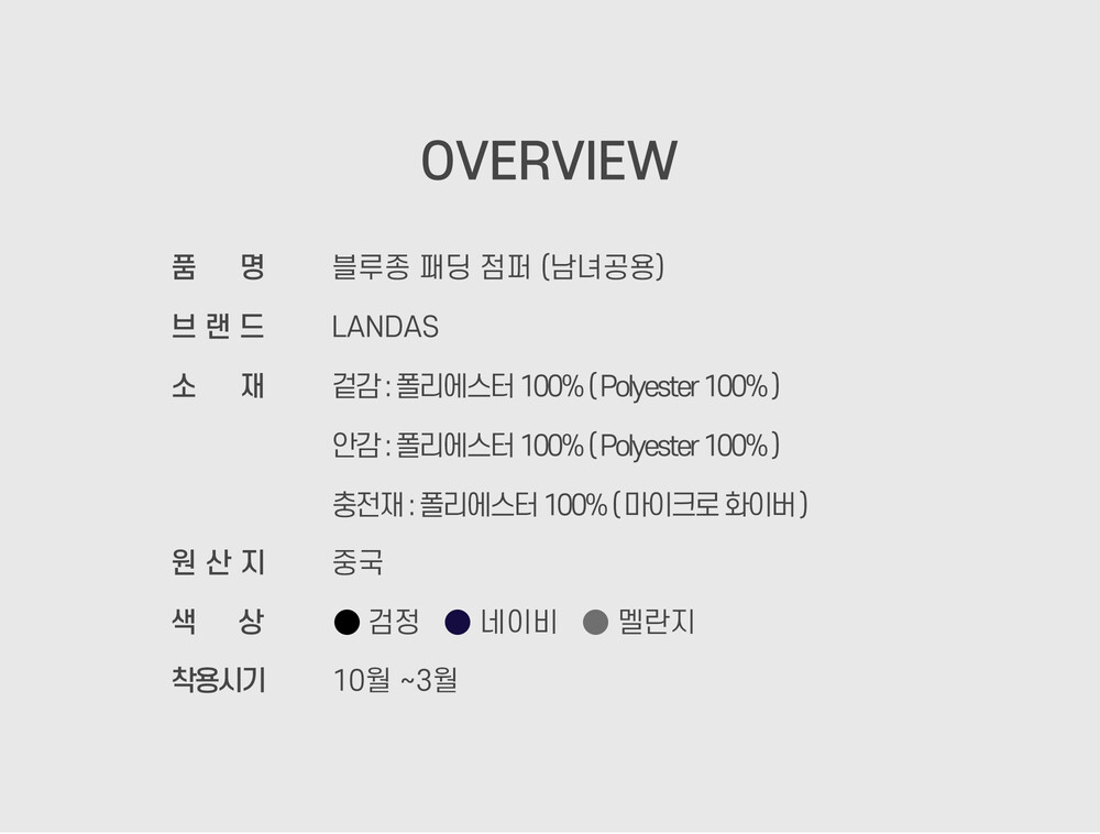 - 충전재인 저데니아 패딩은 복원력이 뛰어나고 한층 부드러워 착용감은 물론 보온력 또한 뛰어납니다.