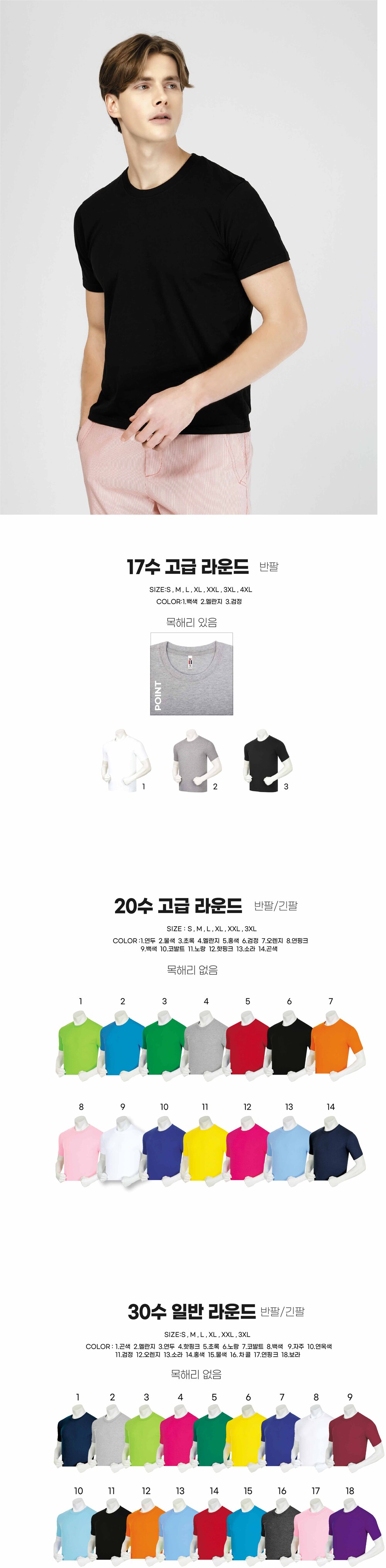 면100% 라운드 반팔/긴팔 | 14색상